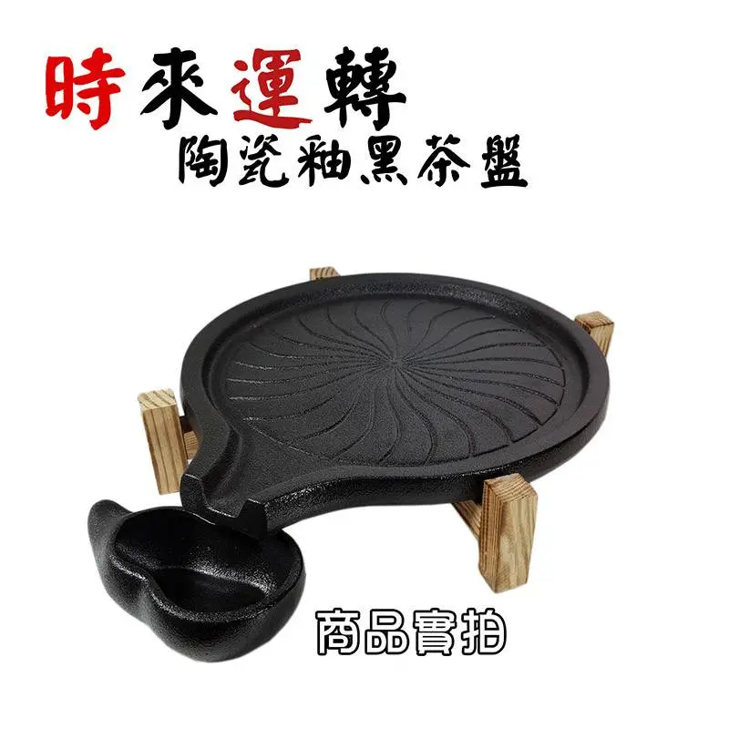 時來運轉釉黑石磨瓷茶盤