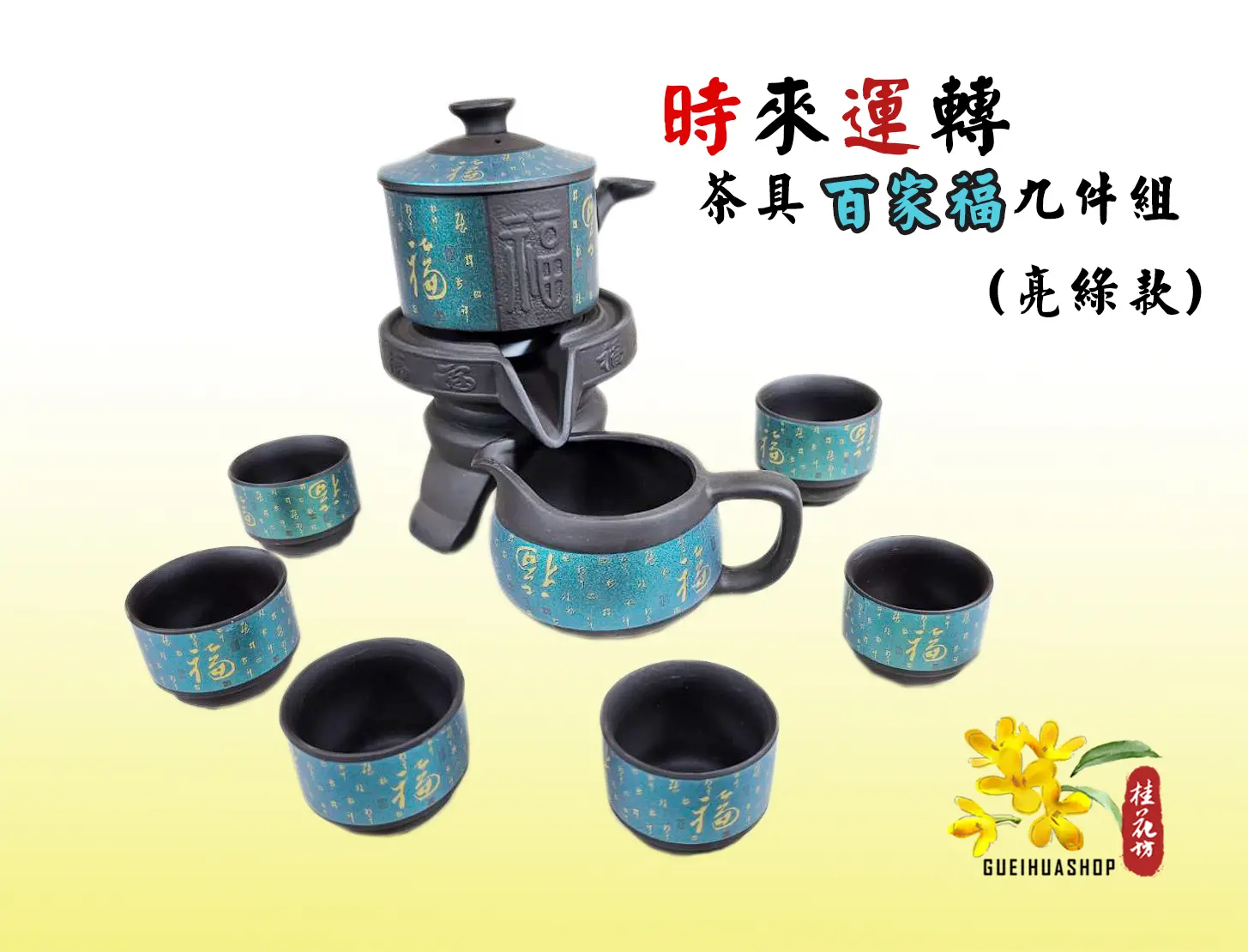 紫砂百家福時來運轉茶具九件組(亮綠款) #茶具 #送禮 #開運 #主題設計