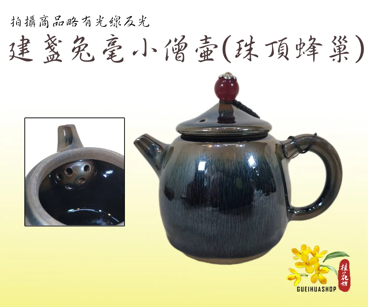 油滴建盞壺 手做龍把:出水有力,乾淨俐落,不泛水花,直洩杯底。90度不掉蓋,口蓋嚴密,蓋子轉動聲音小。三點一線,精緻美觀